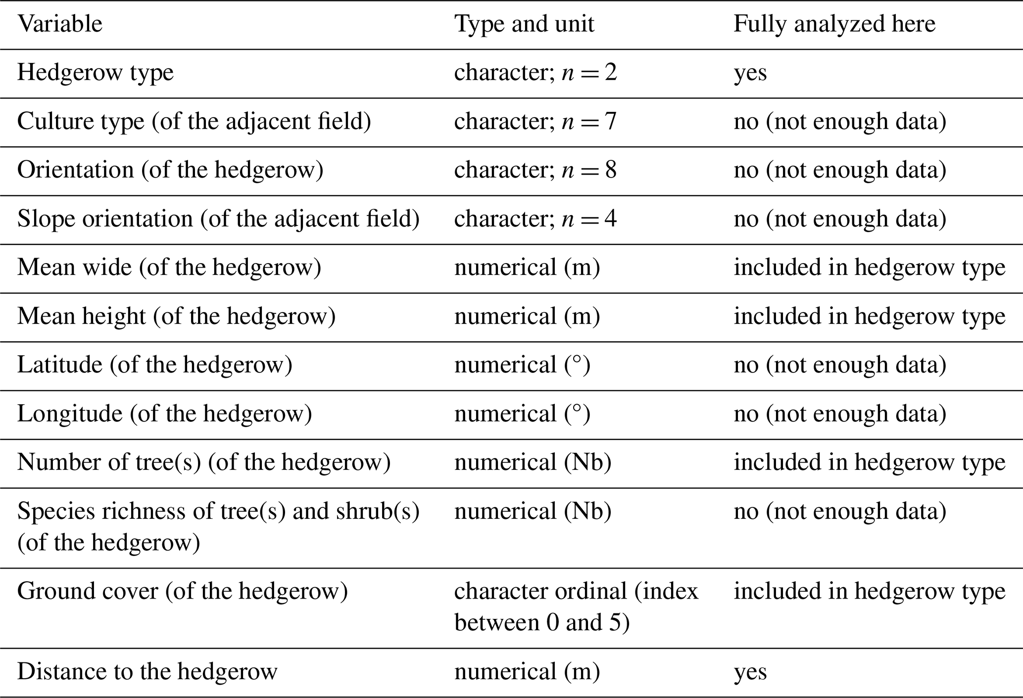 2.2 Hedgerow characteristics